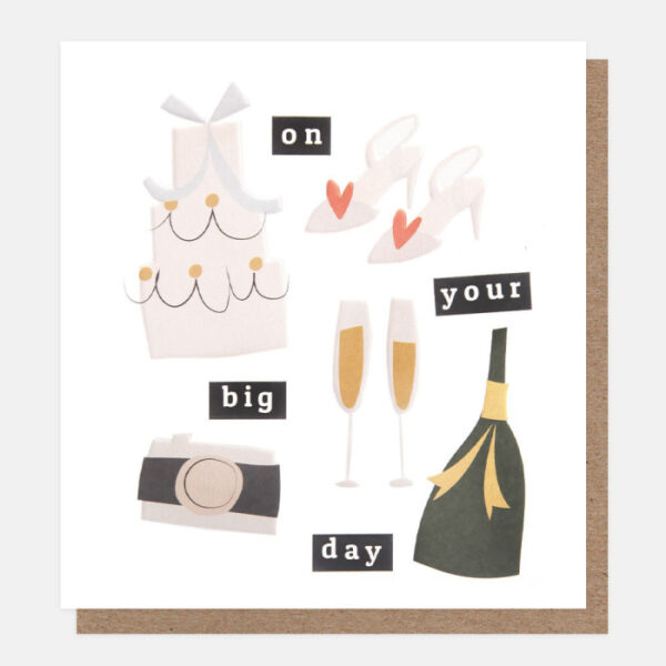 Η κάρτα Caroline Gardner ‘On Your Big Day’ (DYN004) είναι μια γιορτινή, παιχνιδιάρικη κάρτα γάμου ή επετείου με σχέδια όπως τούρτα, σαμπάνια και παπούτσια. Ιδανική για γάμο, αρραβώνα ή επέτειο, προσφέρει έναν χαρούμενο και μοντέρνο τρόπο να εκφράσετε τις ευχές σας.