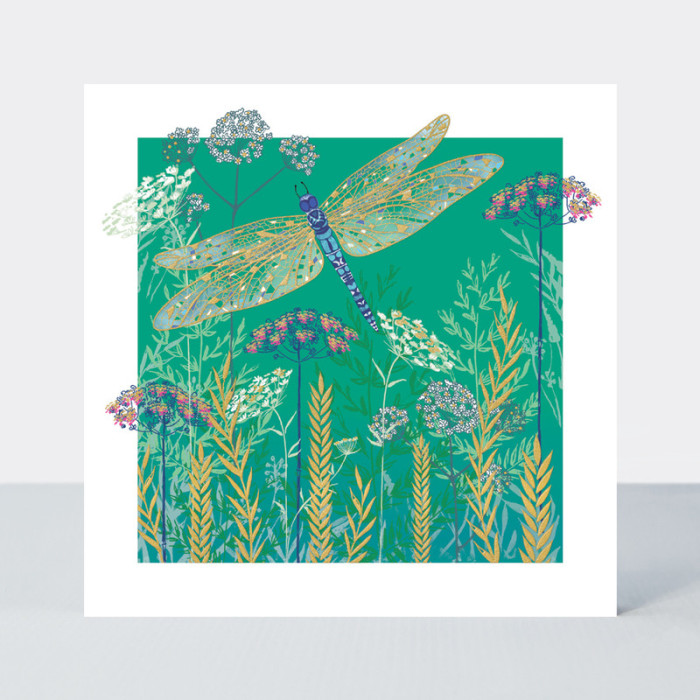 Το έργο τέχνης με το λεπτό και ανυψωτικό σχέδιο της libellula συνοδεύεται από διακριτικές λεπτομέρειες χρυσού φύλλου με αυλακώσεις και είναι εκτυπωμένο σε υψηλής ποιότητας υφασμάτινο χαρτόνι.