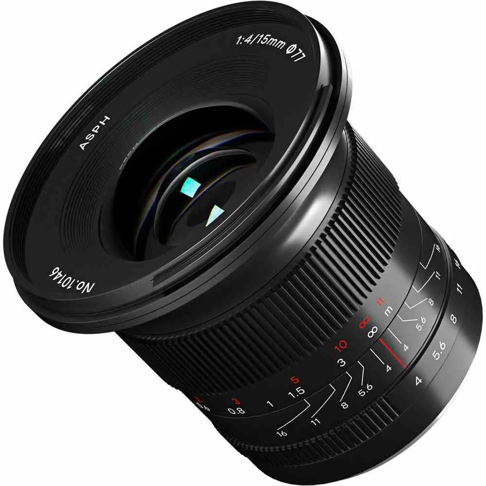 7artisans 15mm f/4 για Nikon Z. Ο φακός 7Artisans 15mm f/4 για Nikon Z διαθέτει εστιακή απόσταση 15 mm, μέγιστο διάφραγμα f/4, λειτουργία χειροκίνητης εστίασης, χειροκίνητο έλεγχο διαφράγματος με κλικ και είναι συμβατός με μηχανές Nikon Z μεγέθους αισθητήρα full frame. Εάν χρησιμοποιηθεί με μηχανές οι οποίες έχουν αισθητήρα μεγέθους APS-C, τότε η ισοδύναμη εστιακή του απόσταση γίνεται 24 mm.