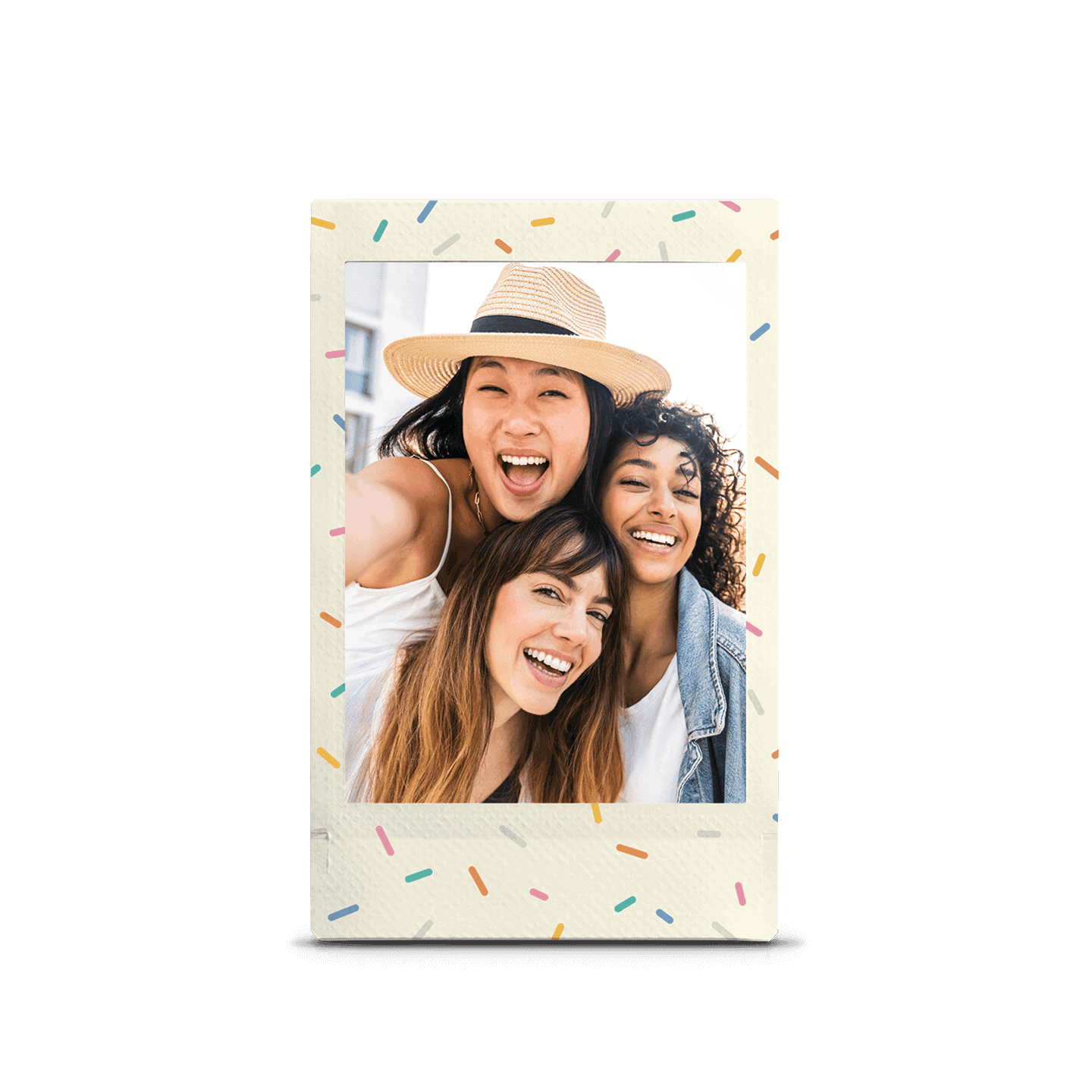 Το Fujifilm Instax Mini Sprinkles είναι η απόλυτη πρόταση για όσους λατρεύουν τις φωτογραφίες με χαρακτήρα και παιχνιδιάρικη διάθεση. Αυτό το instant film ξεχωρίζει χάρη στο μοναδικό του περίγραμμα, που θυμίζει πολύχρωμα sprinkles σε γλυκά. Κάθε φωτογραφία αποκτά τη δική της γλυκιά, ξεχωριστή αισθητική, ιδανική για να συνοδεύσει χαρούμενες και φωτεινές στιγμές.