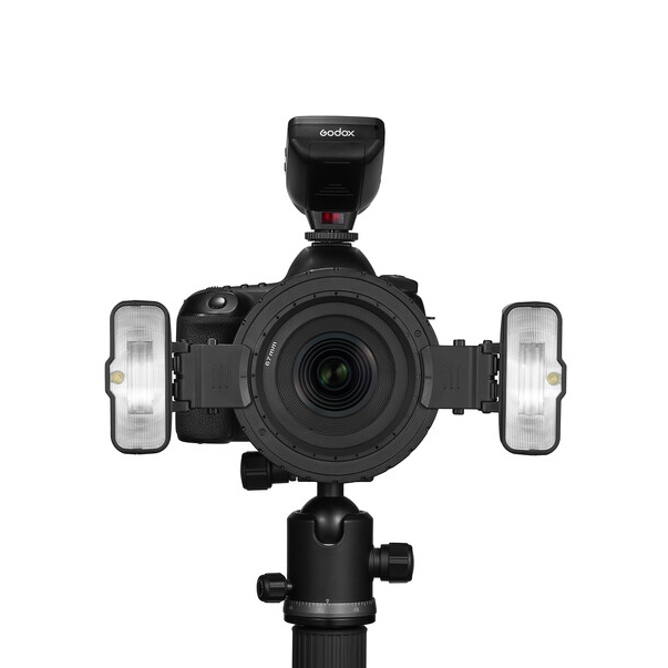 Το Godox MF12-K2 είναι ένα κιτ με δύο TTL φλας ειδικά σχεδιασμένα για φωτογραφίσεις Macro. Συνοδεύεται από ειδικό κυκλικό αντάπτορα που επιτρέπει την ταυτόχρονη στήριξη 2 ή περισσοτέρων φλας MF12 (μέχρι 6) σε φακούς μηχανών μέσω δακτυλίων.