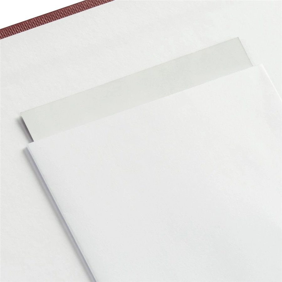 Διαθέτει 50 λευκές σελίδες (25 φύλλα) από φωτογραφικό χαρτόνι χωρίς οξέα, με ενδιάμεσα λευκά προστατευτικά φύλλα pergamin. Οι σελίδες είναι κατάλληλες για επικόλληση φωτογραφιών, ενώ η σταθερή βιβλιοδεσία εξασφαλίζει ανθεκτικότητα στον χρόνο.