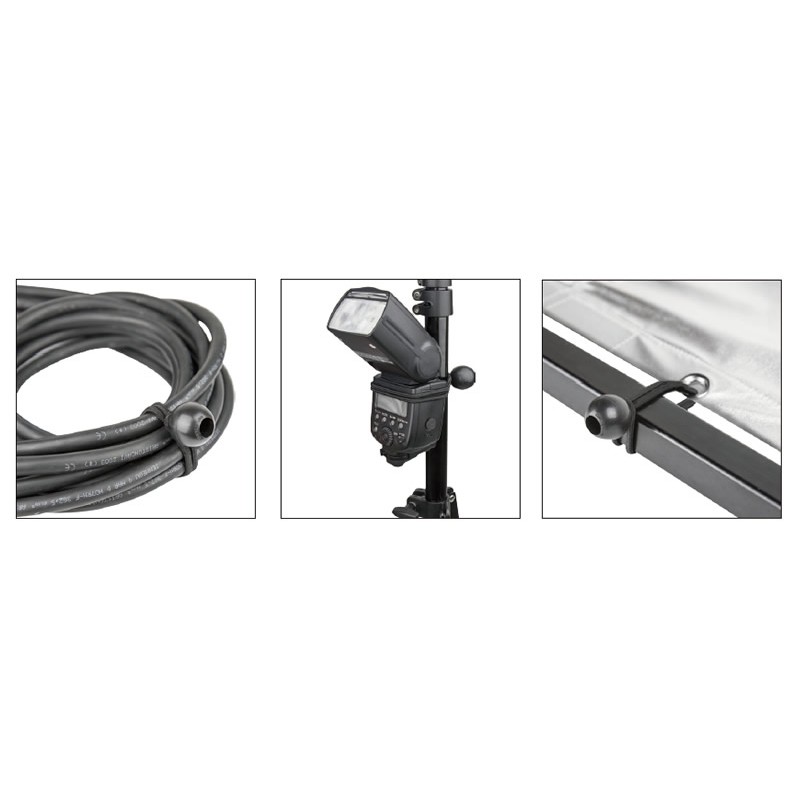 Ελαστικός ιμάντας με μπίλια στο τελείωμά του. Κάθε ιμάντας έχει διάμετρο 4.5mm και η πλαστική μπίλια διάμετρο 28mm. Μήκος από 15 μέχρι 20 cm. Ιδανικός τρόπος πρόσδεσης stand, καλωδίων, υφασμάτων κλπ.