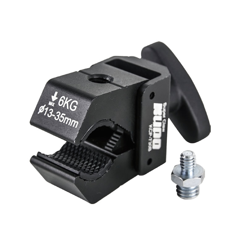 Μικρού μεγέθους ανθεκτικό clamp με υποστηριζόμενο φορτίο 6kgs. Μπορεί να δαγκώσει κυκλικές δοκούς με διάμετρο 1.3-3.48cm και flat επιφάνειες πάχους 0.48-1.98cm. Διαθέτει υποδοχές 1/4”και 3/8”. Υλικό κατασκευήςΑλουμίνιοΥποδοχές 1/4”-20 & 3/8”-16Συμβατές δοκοί 13mm ~ 35mmΦλατ επιφάνειες5mm ~ 20mm