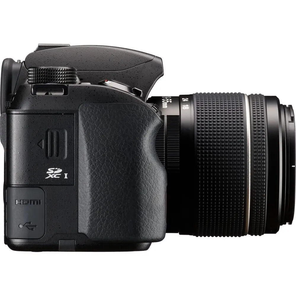 Η νέα Pentax KF 18-55 WR Kit Black είναι μία μικρή DSLR παντός καιρού, ανθεκτική στη σκόνη, τις καιρικές συνθήκες, ιδανική για ταξιδιωτική φωτογράφηση, τοπίων και φύσης. Προσφέρει ποιότητα εικόνας υψηλής ανάλυσης χάρη στον αισθητήρα 24,24 MP APS-C CMOS και τον επεξεργαστή εικόνας PRIME MII. Διαθέτει επίσης οθόνη LCD μεταβλητής γωνίας 3,0″ 1,03 m-dot για εργασία από υψηλές και χαμηλές γωνίες, καθώς και λειτουργία Night Vision Red Light LCD, η οποία μειώνει σημαντικά την καταπόνηση των ματιών κατά τη λήψη σε σκοτεινές συνθήκες, όπως κατά τη λήψη σε λειτουργίες νυχτερινού τοπίου και αστροφωτογραφίας. Επιπλέον, η Pentax KF είναι συμβατή με την προαιρετική μονάδα GPS O-GPS2 για γεωγραφικές ετικέτες και AstroTracer.