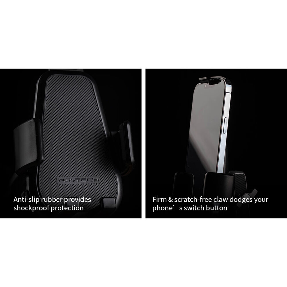 Διαθέτει ανθεκτικό βραχίονα κλίσης με δύο κεφαλές ball για να μπορείτε να ρυθμίσετε με αξιοπιστία και ασφάλεια την επιθυμητή γωνία θέασης. Στερεώνει με ασφάλεια το smartphone σας σε 4 σημεία. Όλοι οι χειρισμοί προσαρμογής δεν απαιτούν εργαλεία.