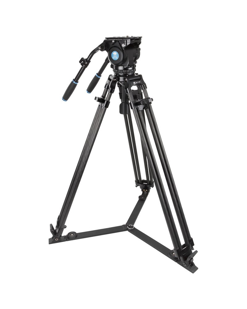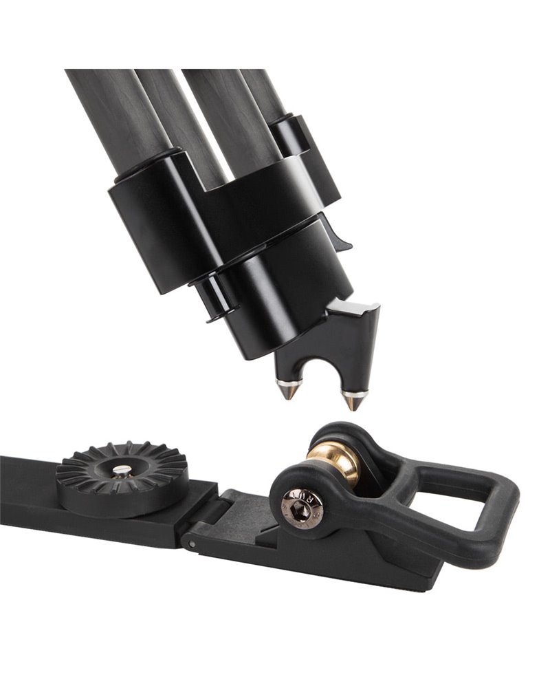 The double pipe legs, the double spikes, the adjustable floor spider and the extremely comfortable medium spider make this tripod indispensable for professional video recordings. The tripod spiders are removable, can be individually adjusted in width and give the tripod the necessary stability. When working without a floor spider and on sensitive soils, the double spikes can be covered with rubber feet. The large rotary closures are particularly practical.