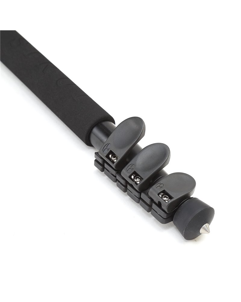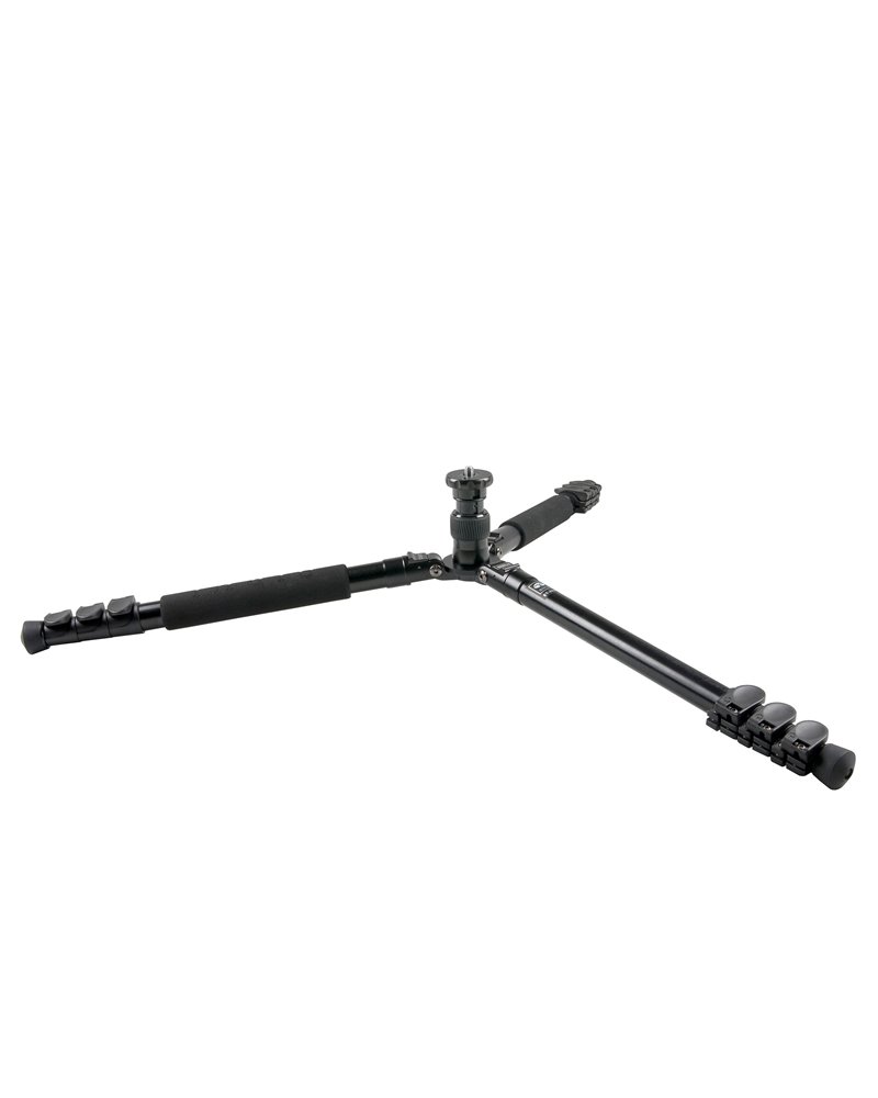 The legs of the Et-2004 can be swiveled up by 180 °, so that the tripod is just 43 cm high when collapsed. The video climb can remain on the tripod. Each leg consists of 4 sections with 3 safe flip locks. The rubber feet with the tunable metal spikes let the tripod stand safely on every surface.