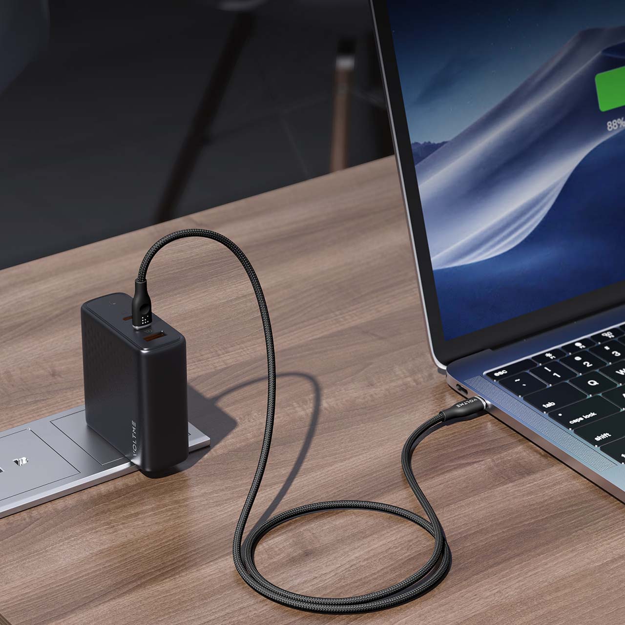 Yποστηρίζει ταχεία φόρτιση με ισχύ έως 100W (20V/5A), προσφέροντας ασφαλή και υψηλής ταχύτητας φόρτιση. Υποστηρίζει επίσης μεταφορά δεδομένων με ταχύτητα έως 480Mbps μέσω USB 2.0.
