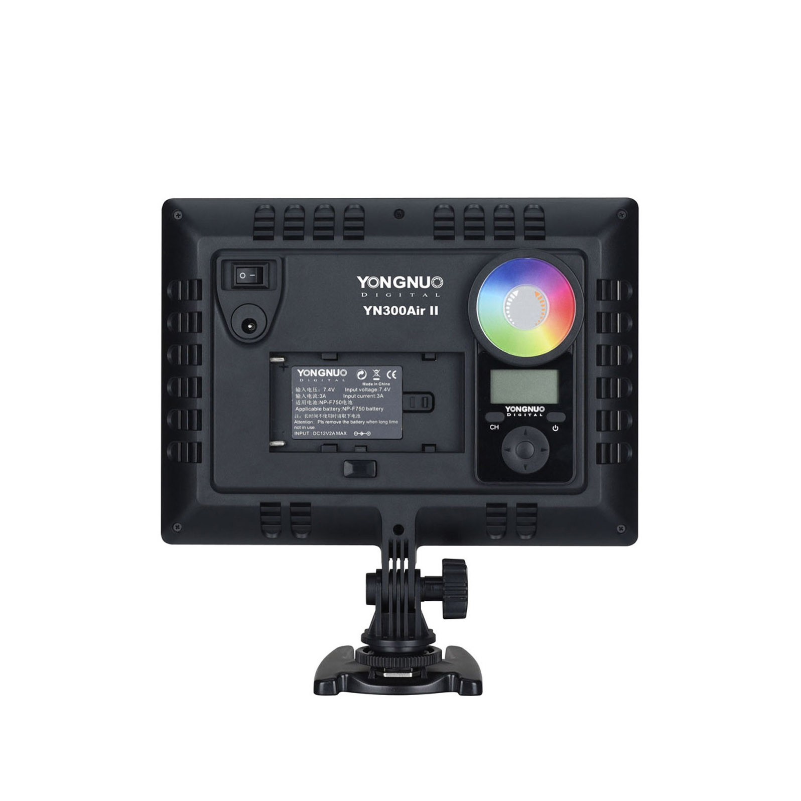 Το Yongnuo YN300AIRii είναι η εξελιγμένη έκδοση του δημοφιλούς YN300AIR, με δυνατότερο ποιοτικό φωτισμό θερμοκρασίας 3200-5600Κ, μεγαλύτερη γωνία κάλυψης και επιπλέον δυνατότητα φωτισμού RGB πλήρους φάσματος. Χρησιμοποιεί 108 υψηλής ποιότητας LED (54 @ 3200K και 54 @ 5600K) και 100 RGB LED.