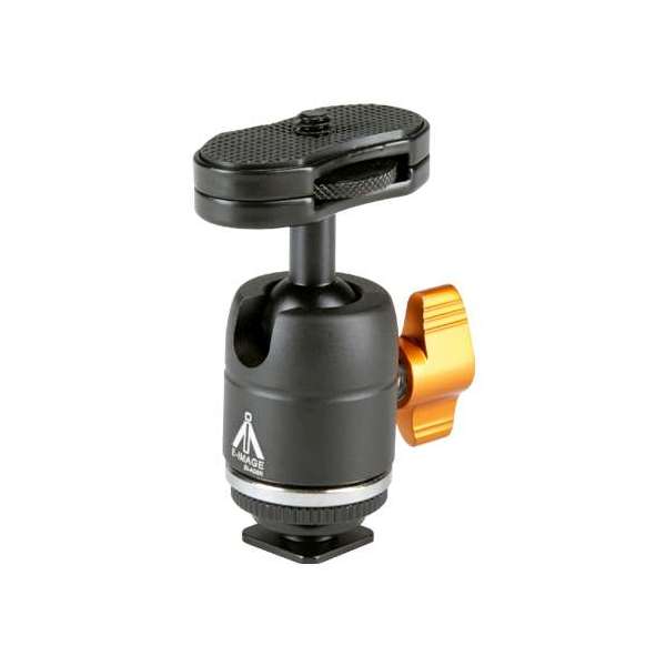 Ball κεφαλή µε Hot shoe adapter. Ο hot shoe adapter είναι αφαιρούμενος ώστε να μπορείτε να βιδώσετε την κεφαλή σε βίδες 1/4″. Επίσης στο άνω τμήμα υπάρχει ειδικός μηχανισμός για ασφαλές και εύκολο βίδωμα.