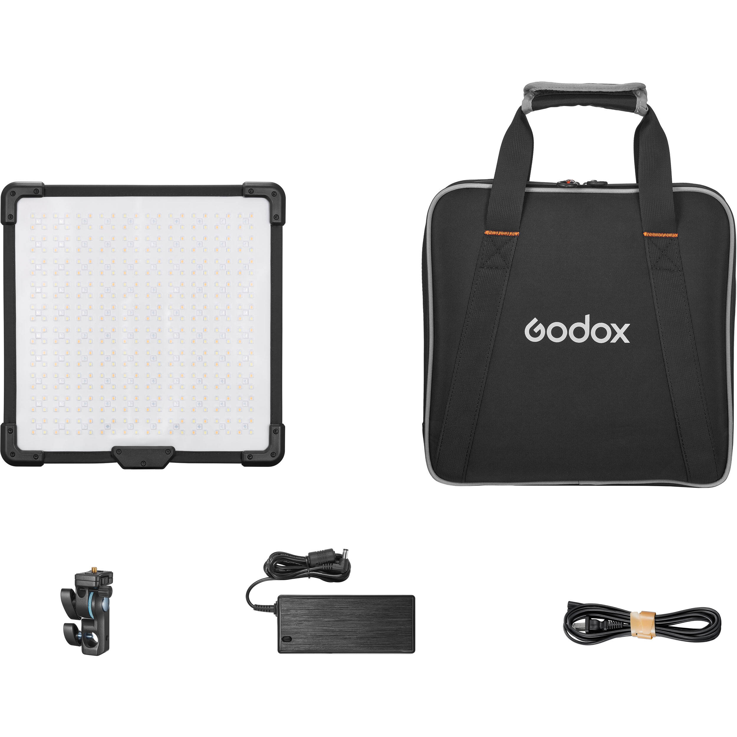 Διαθέτει 14 προ-εγκατεστημένα εφέ video. Το φωτιστικό μπορεί να ελεγχθεί ασύρματα μέσω 2.4G τηλεχειριστηρίου (RC-R9II), μέσω smartphone APP (Godox Light app, bluetooth) ή με εύχρηστα χειριστήρια στο σώμα του. Τροφοδοτείται από παρεχόμενο AC Adapter. Προαιρετικά μπορεί να τροφοδοτηθεί από 2 μπαταρίες τύπου Sony L (NPF770 / NPF970, δεν παρέχονται) με χρήση του αντάπτορα AK-B01 (δεν παρέχεται) ή από μπαταρίες V-Mount με χρήση του αντάπτορα AK-B02 (δεν παρέχεται).