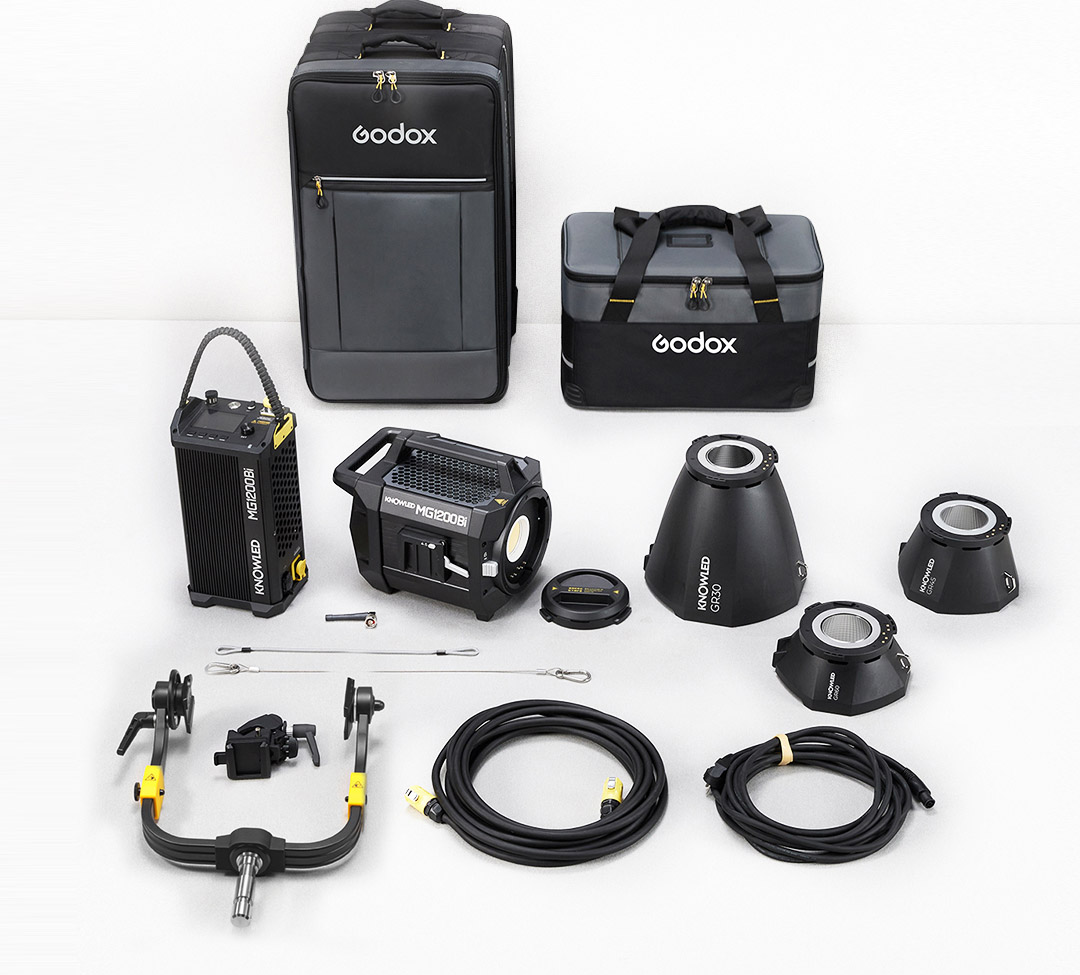 Η συσκευασία του KIT περιλαμβάνει: 1x MG1200bi φωτιστικό, 1x Control Unit, 1x U-type bracket, 1x κεραία, 1x συρματόσχοινο ασφαλείας, 1x ανακλαστήρα GR30, 1x ανακλαστήρα GR45, 1x ανακλαστήρα GR60, 1x καλώδιο ρεύματος, 1x καλώδιο DC, 1x τσάντα μεταφοράς, 1x μαακή θήκη μεταφοράς, 1x σύστημα στήριξης controller, 1x προστατευτικό καπάκι λάμπας.
