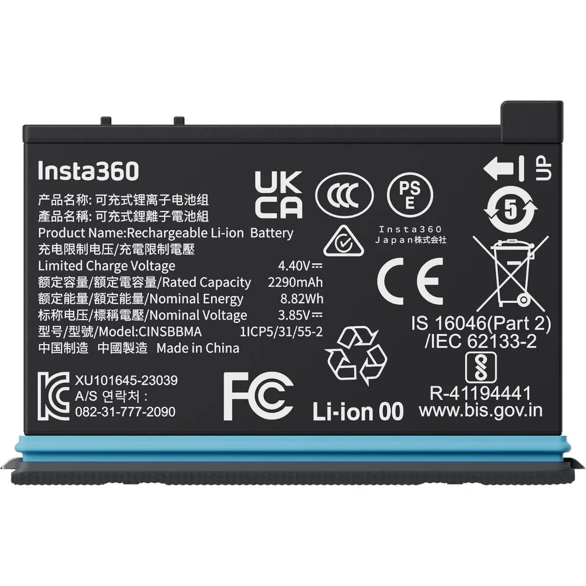 Τροφοδοτήστε την action camera X4 360° 8K με αυτήν την επαναφορτιζόμενη μπαταρία lithium-ion 2290 mAh από την Insta360. Με μια τεράστια αυξημένη χωρητικότητα 67% για συνολικά 2290 mAh, αυτή η μπαταρία διασφαλίζει ότι μπορείτε να καταγράψετε όλη τη δράση σας για έως και 135 λεπτά. Μπορεί να επαναφορτιστεί σε σύντομο χρονικό διάστημα για συνεχή χρήση.