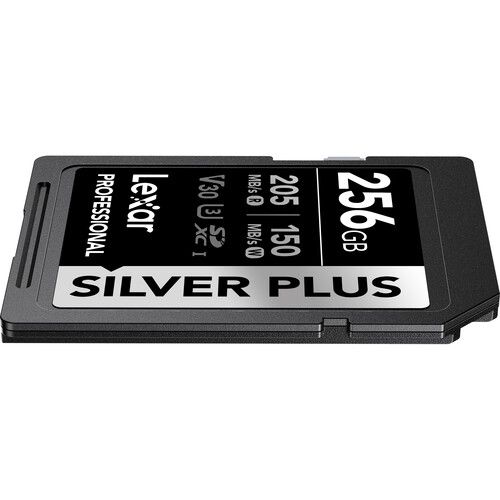 Η επαγγελματική κάρτα μνήμης Lexar 256GB Silver της Lexar διαθέτει χωρητικότητα αποθήκευσης 256 GB και εκμεταλλεύεται το δίαυλο UHS-I για υποστήριξη βίντεο Full HD και 4K/60p. Είναι επίσης κατάλληλο για συνεχείς ριπές κλείστρου, γρήγορη λήψη και λήψεις ακατέργαστων και JPEG. Αυτή η κάρτα μπορεί να επιτύχει μέγιστες ταχύτητες ανάγνωσης έως και 205 MB/s και μέγιστες ταχύτητες εγγραφής έως και 150 MB/s. Χάρη στην κατηγορία ταχύτητας V30, οι ελάχιστες ταχύτητες εγγραφής είναι εγγυημένα ότι δεν θα πέφτουν κάτω από 30 MB/s.