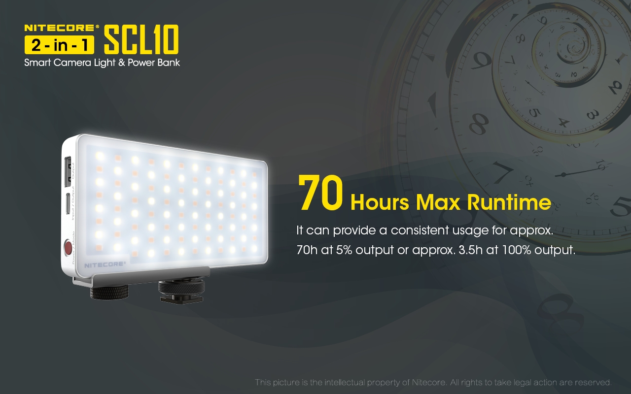 Το NITECORE Power Bank LED SCL10 είναι μία πρακτική και πολυχρηστική συσκευή που συνδυάζει δυνατό LED φωτισμό με power bank μεγάλης χωρητικότητας. Πρόκειται για ένα ιδανικό εργαλείο για φωτογράφους, βιντεογράφους, content creators, αλλά και όσους δραστηριοποιούνται σε εξωτερικούς χώρους. Με το SCL10 έχεις πάντα μαζί σου φως και ενέργεια για τις συσκευές σου, όπου κι αν βρίσκεσαι.