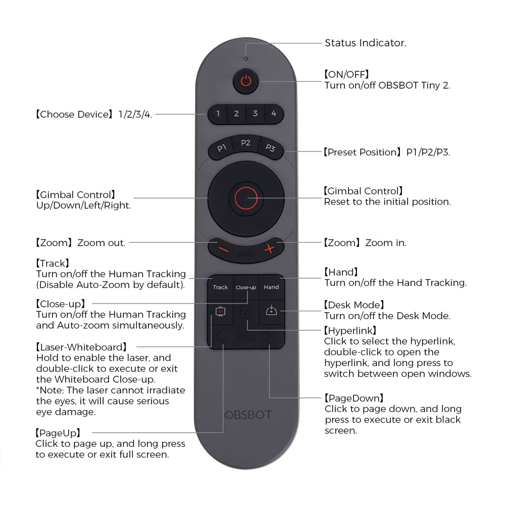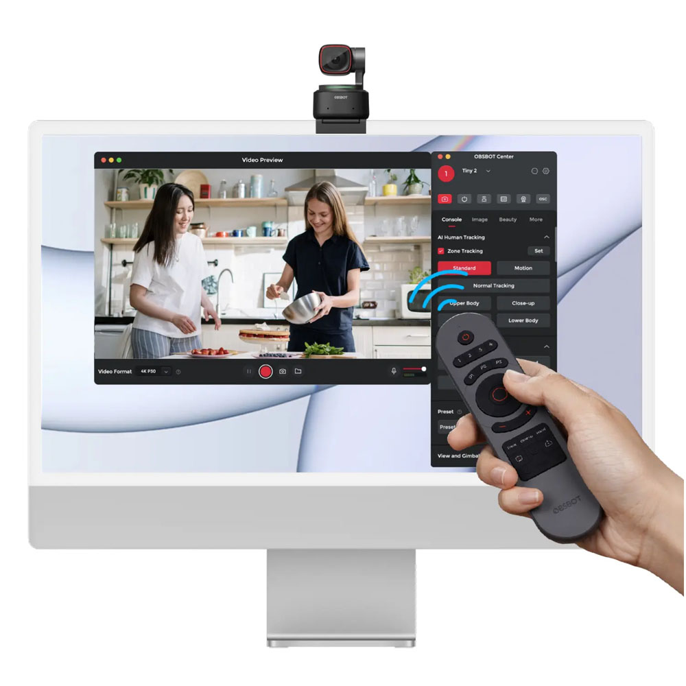 Με άμεση ενσωμάτωση περισσότερων λειτουργίων AI στο τηλεχειριστήριο, τώρα μπορείτε εύκολα να ελέγξετε τις OBSBOT Tiny κάμερές σας και να ενεργοποιήσετε εύκολα τις λειτουργίες Close-up, Desk Mode και άλλες λειτουργίες AI.