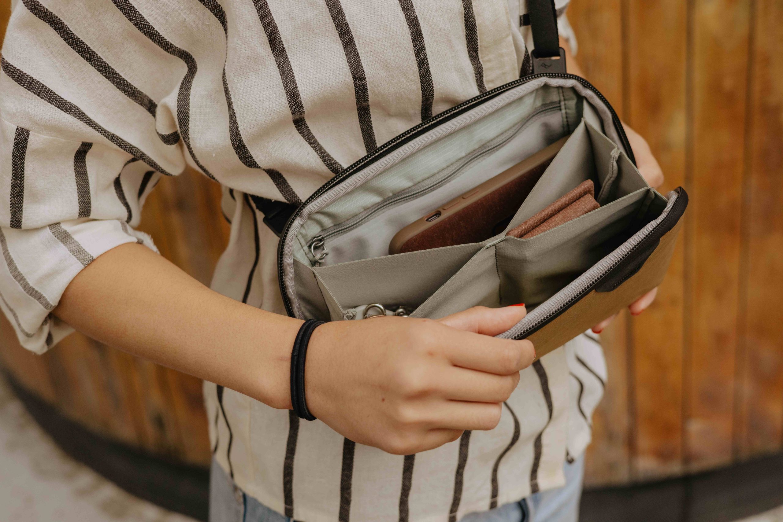 Το Small Tech Pouch, το οποίο είναι περίπου το μισό σε μέγεθος από το δημοφιλές original Tech Pouch, αλλά με την αισθητική και το βραβευμένο design για τη χρηστικότητά του. Αρκετά μικρό για να χωρέσει οπουδήποτε αλλά και σε οποιαδήποτε τσάντα, παρ’όλα αυτά εντυπωσιακά πλούσιο σε χαρακτηριστικά. Ιδανικό για καθημερινά αντικείμενα όπως καλώδια, κάρτεσ, μπαταρίες και φορτιστές.  Το εσωτερικό του έχει σχεδιασμό με 12 τσέπες μαζί με 4 σε στυλ origami για μεγαλύτερα αντικείμενα. Το εξωτερικό του είναι ανθεκτικό σε όποια καιρική συνθήκη, λόγω του εξωτερικού υφάσματος Versa Shell™ 400D και των #8 UltraZip™. Διαθέτει υποδοχές Cord Hook™ loops που του επιτρέπουν να συνδεθεί με οποιοδήποτε Peak Design strap ή carry strap (πωλείται ξεχωριστά), για να το μετατρέψετε σε τσαντάκι ώμου/χιαστί.