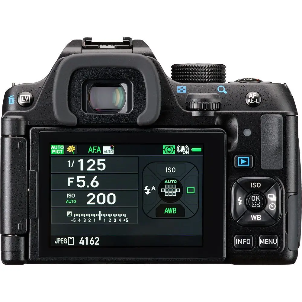Η νέα Pentax KF είναι μία μικρή DSLR παντός καιρού, ανθεκτική στη σκόνη, τις καιρικές συνθήκες, ιδανική για ταξιδιωτική φωτογράφηση, τοπίων και φύσης. Προσφέρει ποιότητα εικόνας υψηλής ανάλυσης χάρη στον αισθητήρα 24,24 MP APS-C CMOS και τον επεξεργαστή εικόνας PRIME MII. Διαθέτει επίσης οθόνη LCD μεταβλητής γωνίας 3,0″ 1,03 m-dot για εργασία από υψηλές και χαμηλές γωνίες, καθώς και λειτουργία Night Vision Red Light LCD, η οποία μειώνει σημαντικά την καταπόνηση των ματιών κατά τη λήψη σε σκοτεινές συνθήκες, όπως κατά τη λήψη σε λειτουργίες νυχτερινού τοπίου και αστροφωτογραφίας. Επιπλέον, η Pentax KF είναι συμβατή με την προαιρετική μονάδα GPS O-GPS2 για γεωγραφικές ετικέτες και AstroTracer.