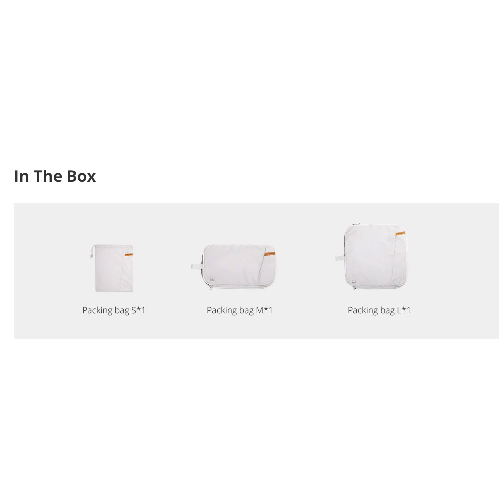 Βοηθά τους ταξιδιώτες να παραμένουν οργανωμένοι με τον σχεδιασμό διπλού διαμερίσματος για τον διαχωρισμό καθαρών και βρώμικων ρούχων. Περιλαμβάνει τρεις ελαφριές, ανθεκτικές στο τσαλάκωμα τσάντες από νάιλον: μικρή (για εσώρουχα), μεσαία (για μπλουζάκια) και μεγάλη (για μπουφάν), με τις δύο μεγαλύτερες να διαθέτουν φερμουάρ συμπίεσης για εξοικονόμηση χώρου. Ιδανικό για αποδοτικό πακετάρισμα, το σετ κρατά τα ρούχα τακτοποιημένα και εύκολα προσβάσιμα.