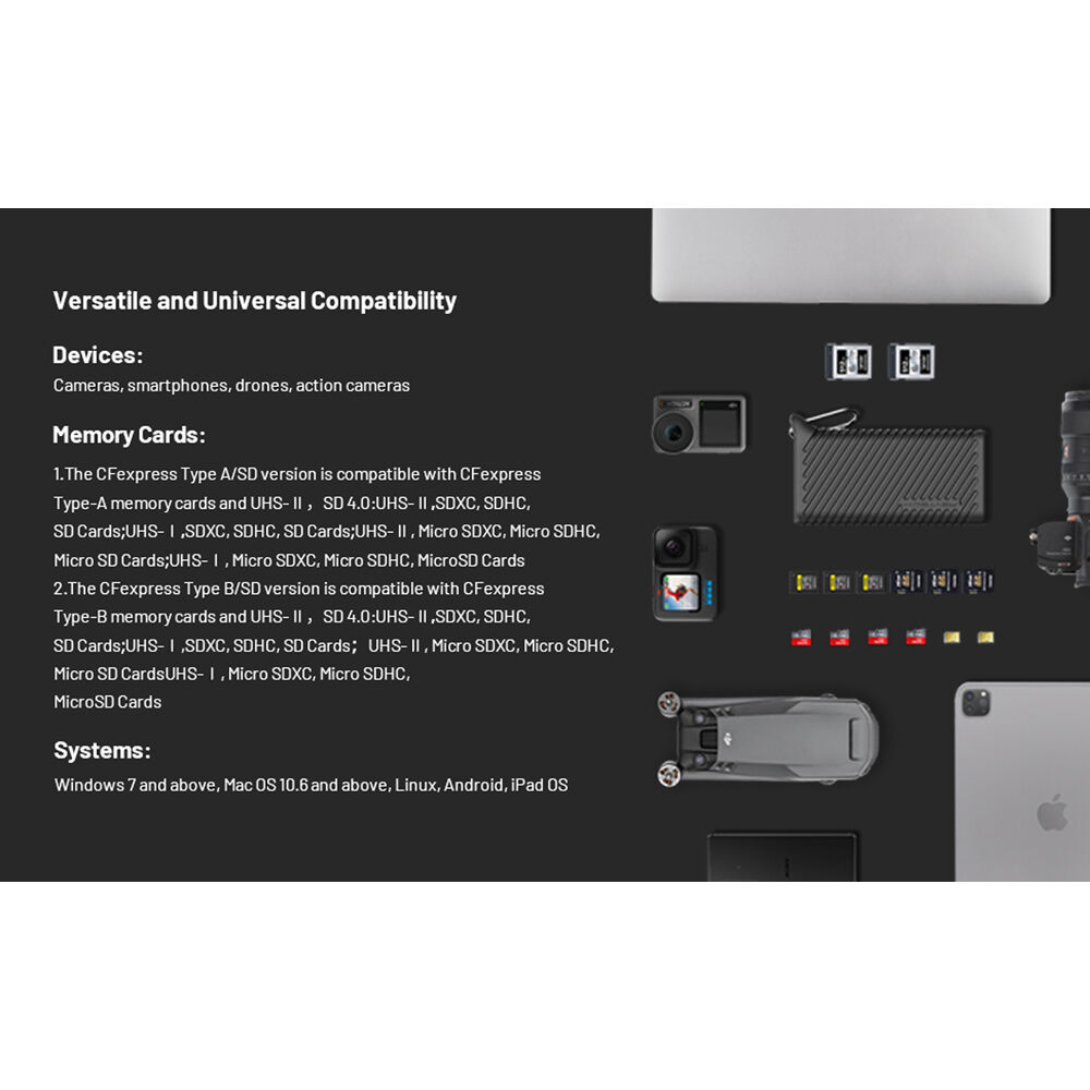 – Ταχύτητα μεταφοράς 1000 MB/s από κάρτες CF Express Type-A με ενσωματωμένο USB 3.2 Gen2 chip
