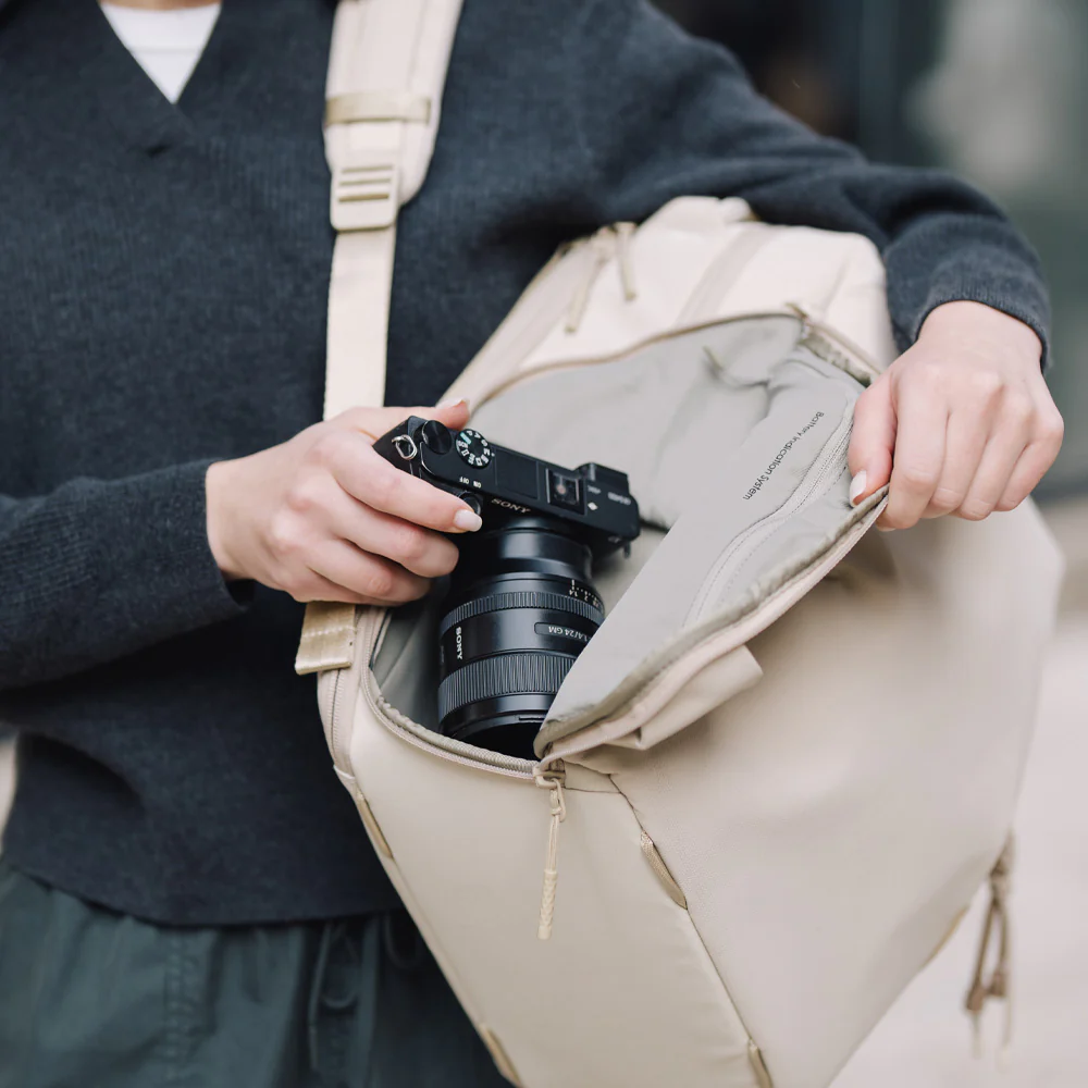 Οι φαρδιοί ιμάντες ώμου και το διαπνέον πίσω πάνελ εξασφαλίζουν άνεση ακόμα και σε πολύωρη χρήση, χωρίς κόπωση ή πίεση στους ώμους. Διαθέτει δύο γρήγορες προσβάσεις, μία στο πλάι για την κάμερα και μία στο επάνω μέρος για καθημερινά αντικείμενα, ώστε να έχετε άμεση πρόσβαση στον εξοπλισμό.