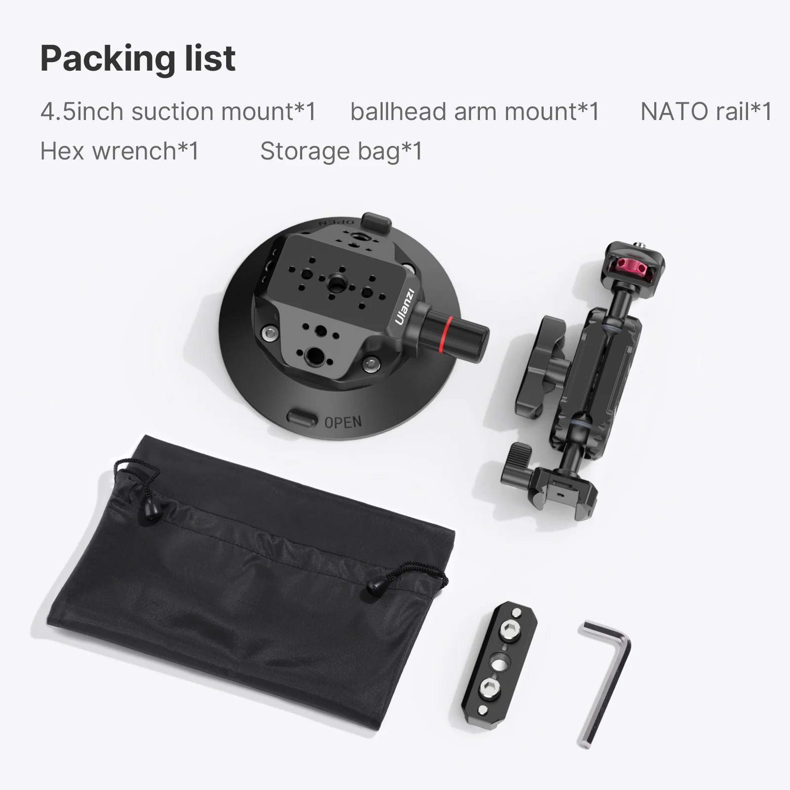 Ο βραχίονας διαθέτει σφαιρικές κεφαλές 360° σε κάθε πλευρά, ένα στήριγμα με βίδα 1/4″-20 στο ένα άκρο και έναν σφιγκτήρα ΝΑΤΟ στο άλλο άκρο για γρήγορη τοποθέτηση και απελευθέρωση.