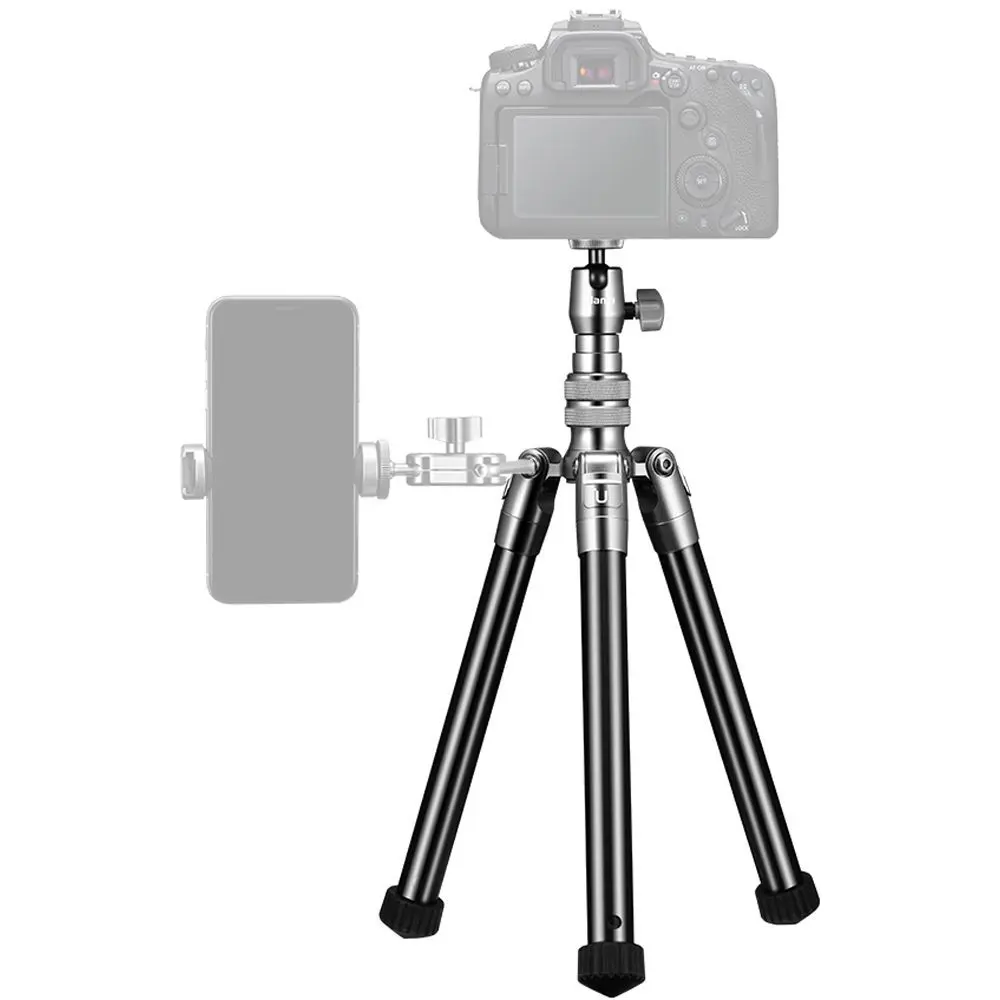 Το 2-σε-1 Ulanzi SK-04 τρίποδο & Selfie Stick είναι κατάλληλο τόσο για κινητά όσο και φωτογραφικές μηχανές. Στη λειτουργία τρίποδου, έχει τρία τηλεσκοπικά πόδια αλουμινίου 5 τμημάτων και έναν κεντρικό τηλεσκοπικό στύλο 3 τμημάτων. Στην κορυφή υπάρχει μια κεφαλή μπάλας κλειδώματος που μπορεί να τοποθετηθεί έως και 90° προς τα αριστερά ή προς τα δεξιά. Η βάση στην κεφαλή μπάλας είναι μια τυπική βίδα 1/4″ που είναι συμβατή με πολλές ψηφιακές φωτογραφικές μηχανές και την περιλαμβανόμενη βάση smartphone.