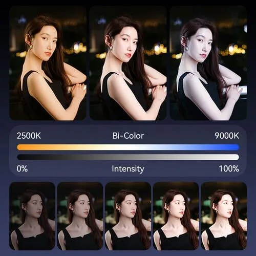 Διαθέτει πλήρη RGB χρωματικό έλεγχο με ρύθμιση απόχρωσης 360°, δίνοντάς σου τη δυνατότητα να επιλέξεις μέσα από εκατομμύρια χρώματα. Έτσι μπορείς να δημιουργήσεις mood lighting, να προσθέσεις δημιουργικά backlights ή να προσομοιώσεις πρακτικές πηγές φωτός στο κάδρο σου. Παράλληλα, προσφέρει ρυθμιζόμενη θερμοκρασία χρώματος από θερμό φως 2500K έως ψυχρό 9000K, επιτρέποντάς σου να ταιριάξεις τον φωτισμό με το περιβάλλον ή να πετύχεις το ιδανικό αποτέλεσμα για φυσικούς τόνους δέρματος.
