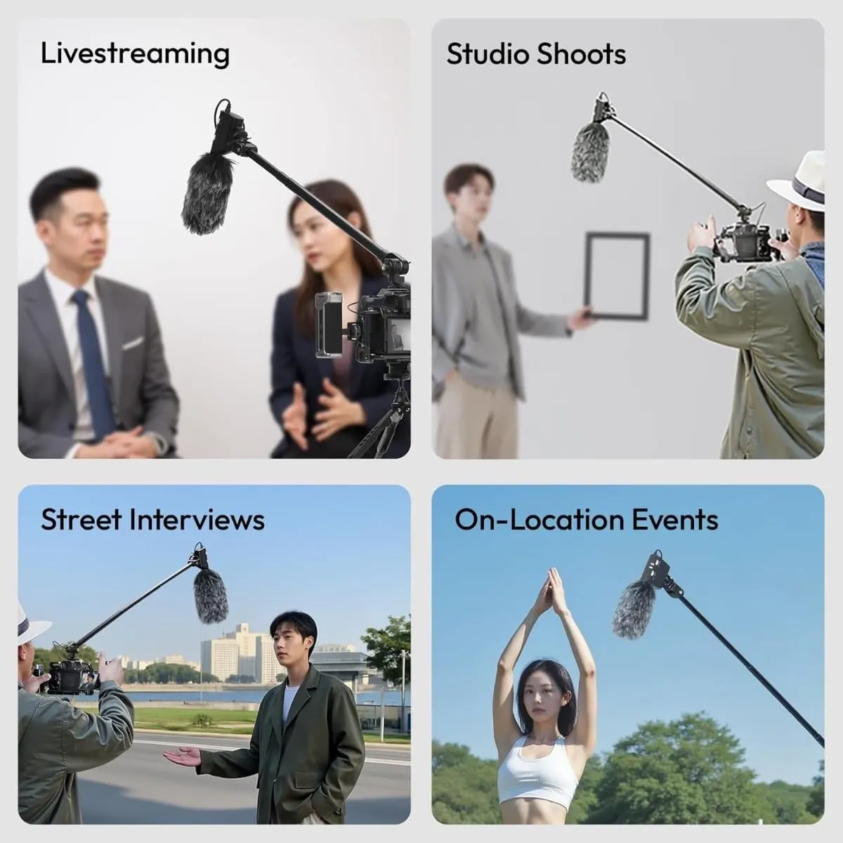 Ιδανικό για πεδία φωτογραφίας/βίντεο – λόγω μικρού βάρους και εύκολης επέκτασης, είναι κατάλληλο για λήψεις συνεντεύξεων, vlog, σχολιασμού, podcast.