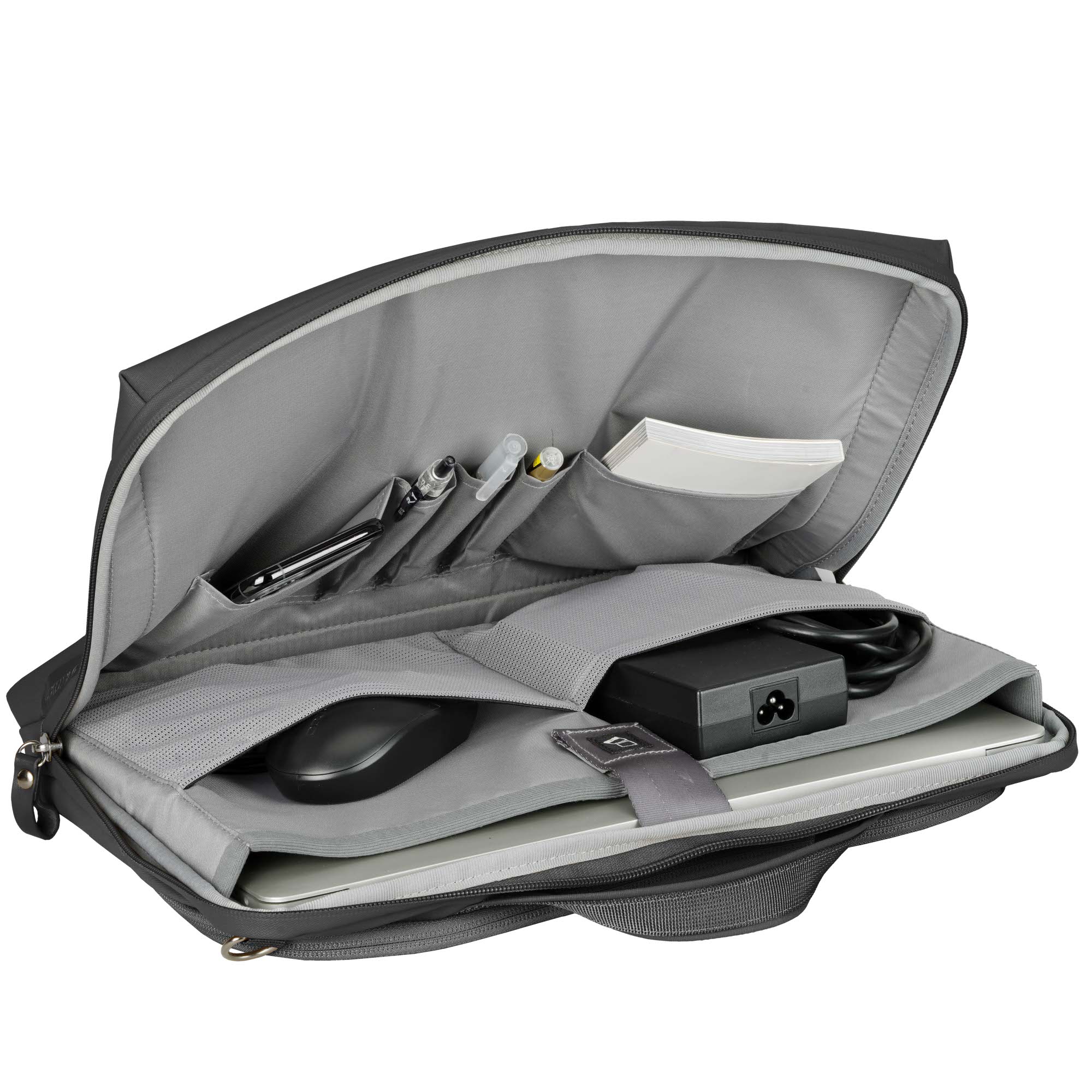 - Η κύρια θήκη χωράει φορητό υπολογιστή έως 16″, με επιπλέον θήκες για αξεσουάρ