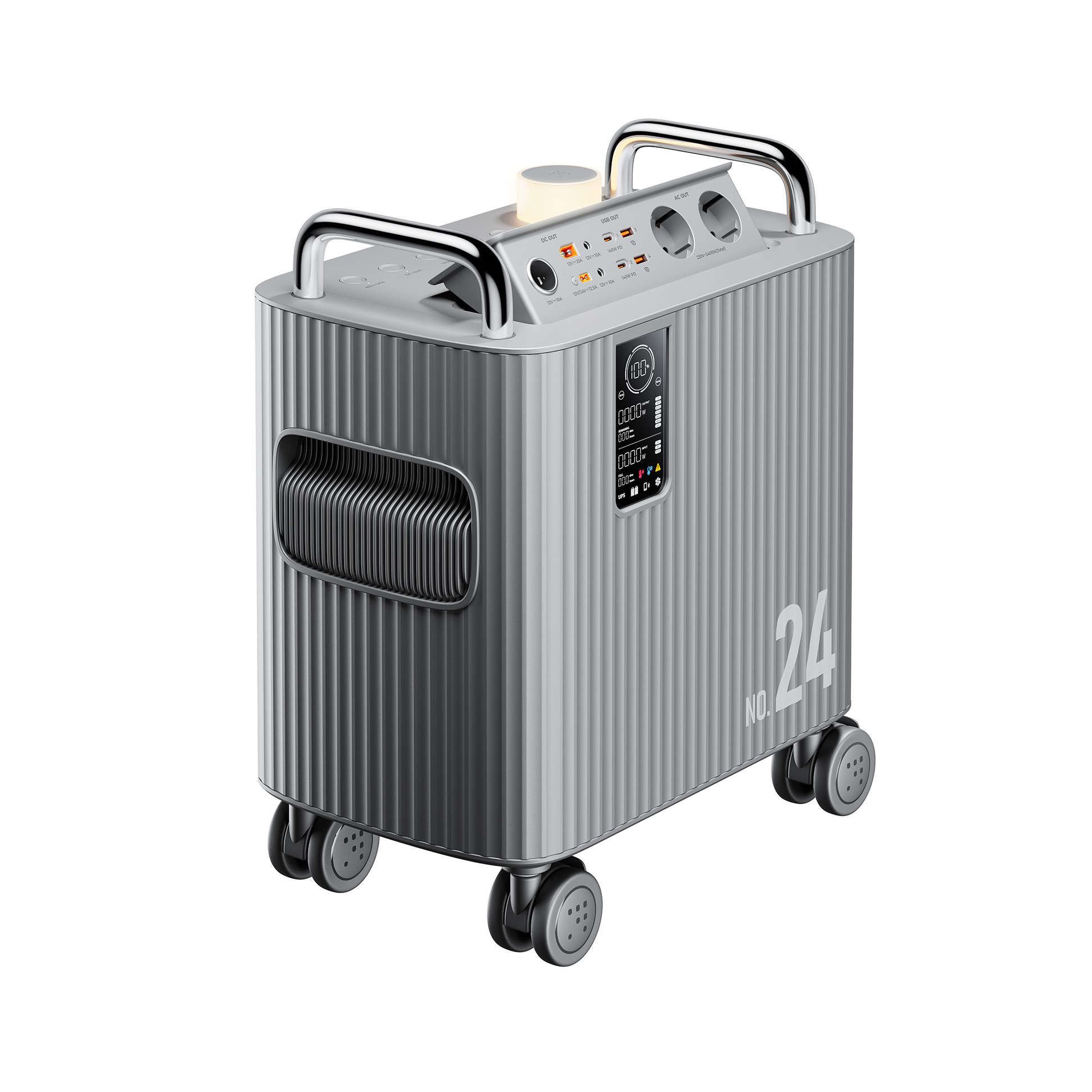 Ο Hako 2400w είναι ένας φορητός σταθμός ενέργειας της VOLTME, που συνδυάζει καινοτομία, αξιοπιστία και πρακτικότητα. Διαθέτει τον πρώτο πτυσσόμενο έξυπνο πίνακα In-Out παγκοσμίως, με ηλεκτρική κλειδαριά και σχεδίαση που αποτρέπει τη συσσώρευση σκόνης για μεγαλύτερη διάρκεια ζωής. Η ενσωματωμένη έξυπνη λάμπα αφής LED λειτουργεί αυτόνομα χωρίς ενεργοποίηση του σταθμού, προσφέροντας φωτισμό όπου κι αν βρίσκεστε. Με ισχυρό σύστημα διαχείρισης μπαταρίας (BMS) που προστατεύει από υπερφόρτιση, υπέρταση και υπερθέρμανση, ενώ η πατενταρισμένη τεχνολογία ψύξης Voltnado, προσφέρει έως και 33% καλύτερη απόδοση ψύξης.