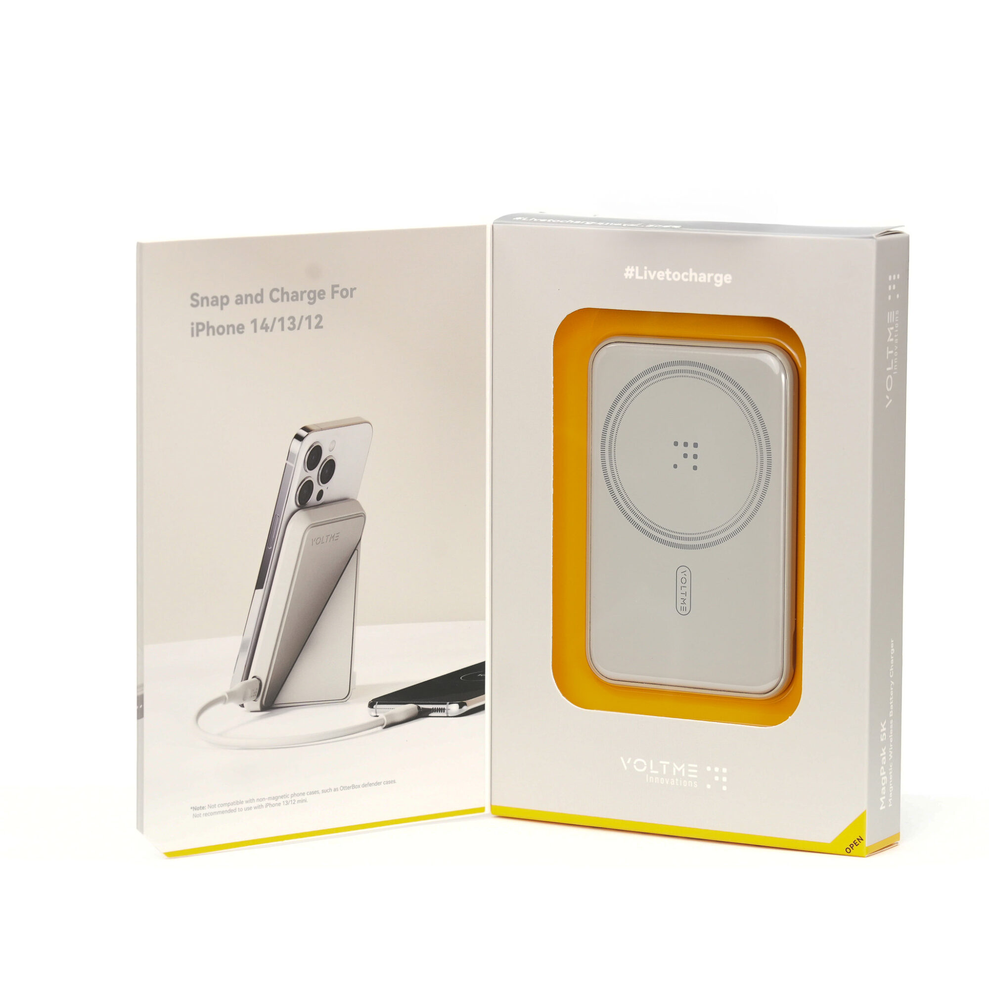 Το Voltme MagPak 5K είναι ένα powerbank και ασύρματος φορτιστής 5000mAh, συμβατός με iPhone 12, 13 και 14 μέσω τεχνολογίας MagSafe. Προσφέρει ασύρματη φόρτιση έως 7.5W και ενσύρματη φόρτιση μέσω USB-C με ισχύ έως 5V/3A.